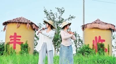 大学生在茗泉谷采风,展示新农村村乡土风情