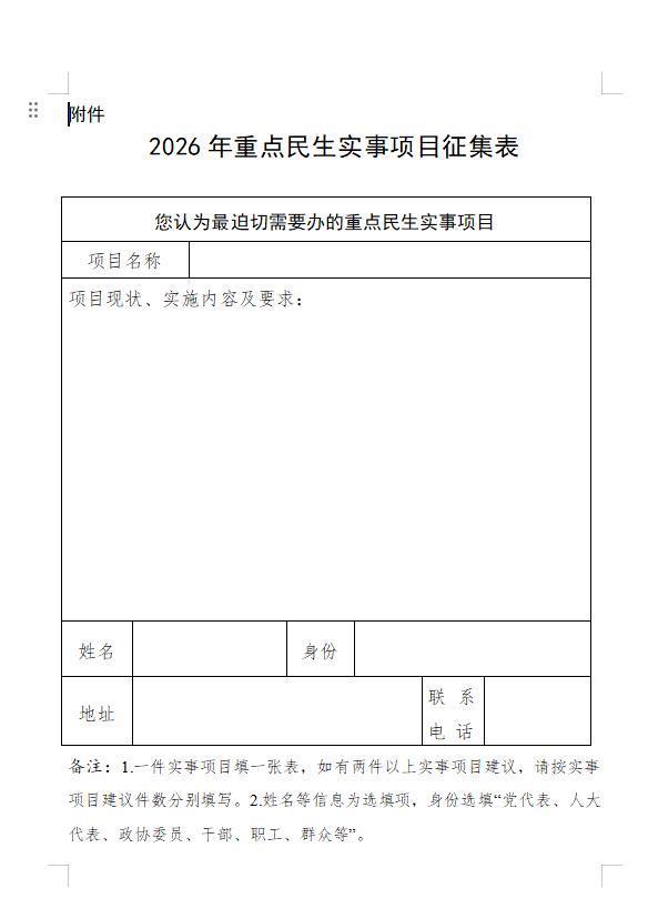 “民生实事码上通”项目征集二维码附件:2026年重点民生实事项目征集表