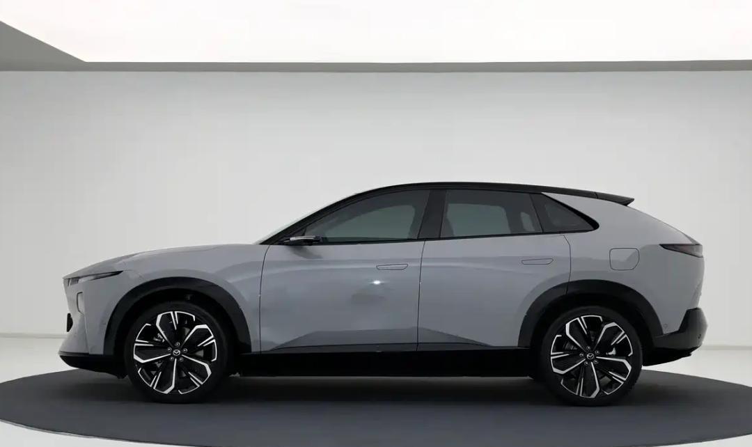 车身侧面线条流畅动感,采用了时下流行的 隐藏式门把手,侧面线条简洁有力。特别值得一提的是,它 可选装电子外后视镜(摄像头替代传统后视镜),不仅更酷炫,也能降低风阻。前后轮眉和车门下边缘用了亮黑色材质包裹,点缀着“MAZDA”英文标识,质感不错。车尾则是 贯穿式尾灯组 + 后扰流板 的组合,配上 21英寸的大轮毂(搭配米其林轮胎),运动感十足。宽大的C柱还做了镂空处理,据说能优化空气动力学。